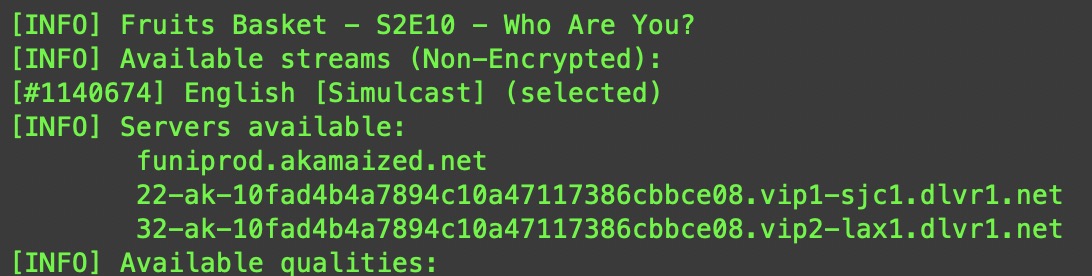 funiprod.akamaized.netbut doing EGnode funi -s 825013 -e 35 -x 2(Fruits Basket S2E10 Dub) no issues-xis the server selectionjust do