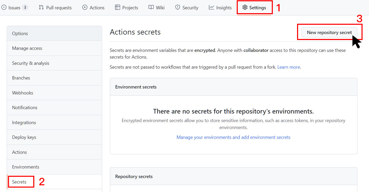 Go to Settings > Secrets > New repository secret: