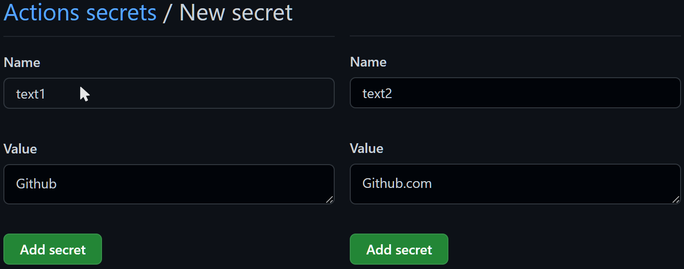 Create two Secrets named text1 and text2 and fill in values.